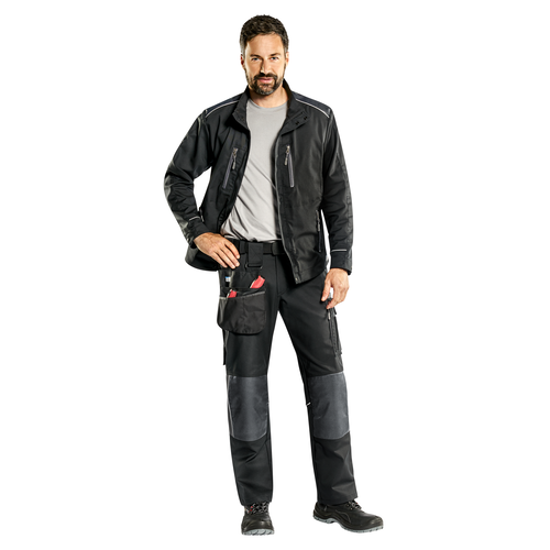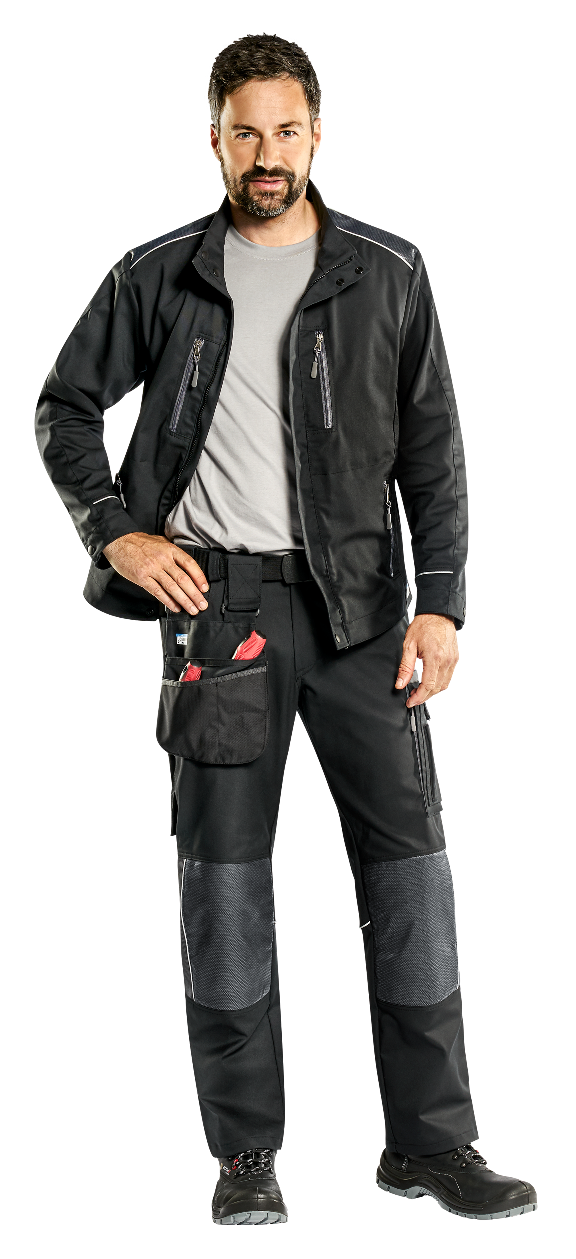 1 aufgesetzte Multifunktionstasche links mit 3 einzelnen Taschen und 1 Stiftetasche