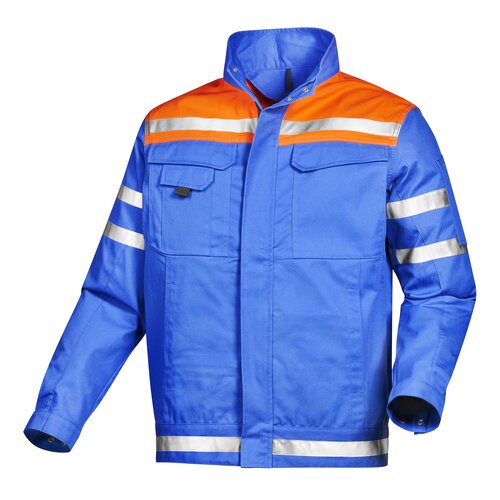 Reflexstreifen: 2,5 cm breit, je 1 Streifen auf Vorder- und Rückenpasse, je 2 Streifen auf den Oberarmen, 1 Streifen rundum auf dem Bund