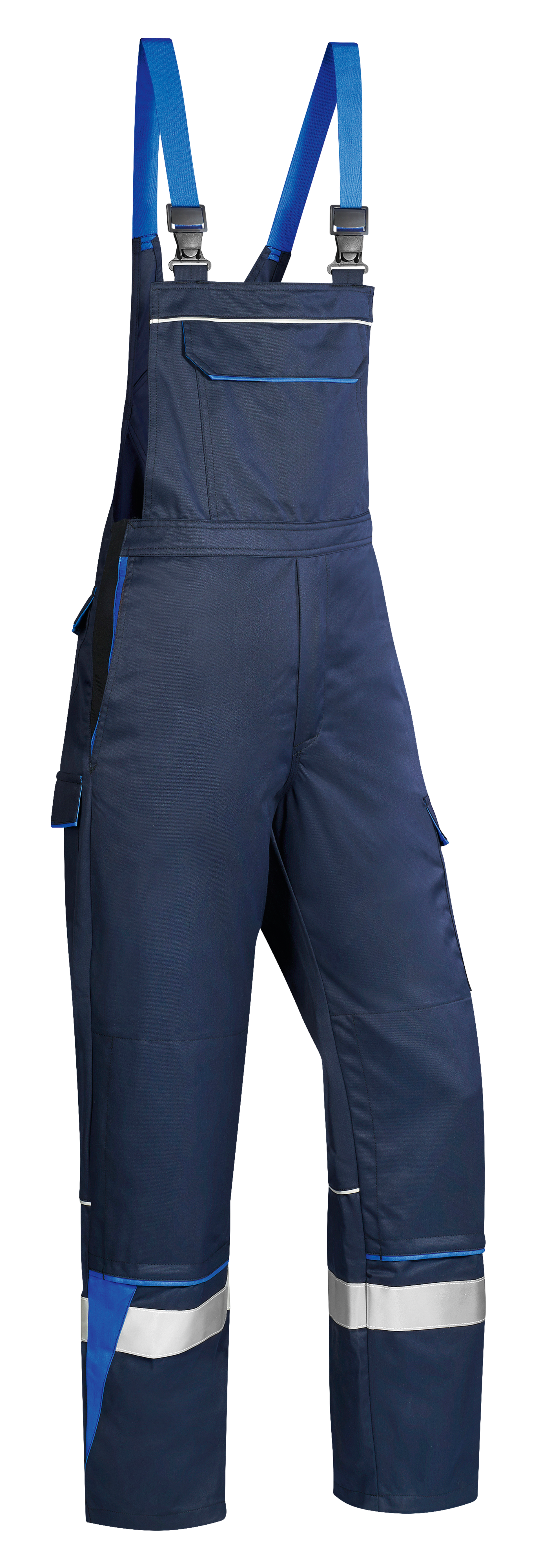 Flammschutz-Reflex-Keder: am Brustlatzstreifen, am hinteren Hosenbein an Teilungsnaht