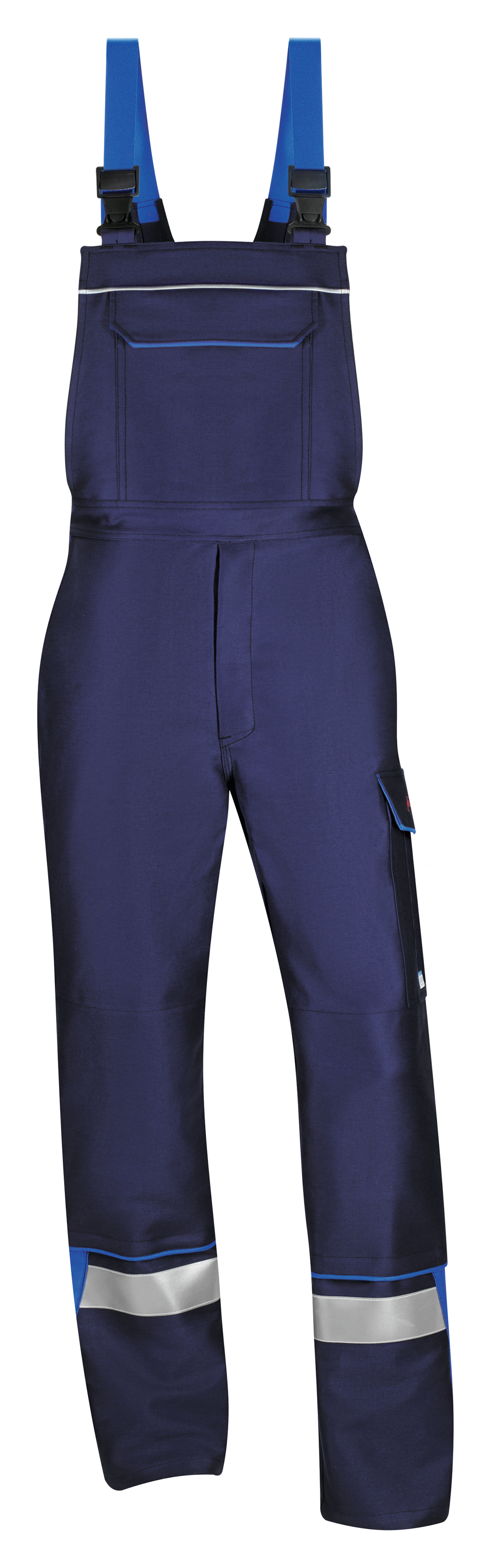 Flammschutz-Reflex-Keder: am Brustlatzstreifen, am hinteren Hosenbein an Teilungsnaht